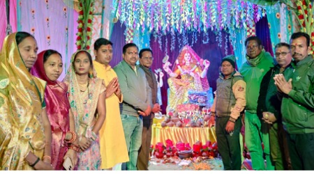ग्राम ठेंगाकोट में महालक्ष्मी पुराण कथा का आयोजन। माता से आशीर्वाद मांगने पहुंचे जनप्रतिनिधि।