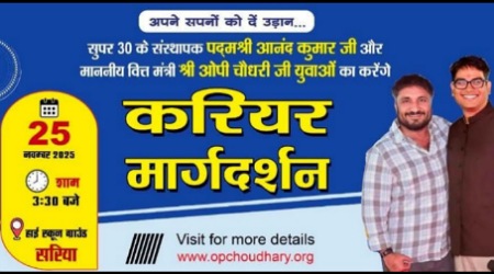 सारंगढ़ बिलाईगढ़, 25 नवंबर 2025/ जिले में युवाओं के उज्ज्वल भविष्य और करियर निर्माण के लिए करियर मार्गदर्शन कार्यक्रम का भव्य आयोजन सरिया में 25 नवंबर को अपरान्ह 3:30 बजे किया जा रहा है। इसमें सुपर-30 के संस्थापक पद्मश्री आनंद कुमार 25 नवंबर को युवाओं को सफलता का मंत्र देंगे। यह कार्यक्रम प्रदेश के वित्त मंत्री ओपी चौधरी की पहल पर आयोजित किया जा रहा है।